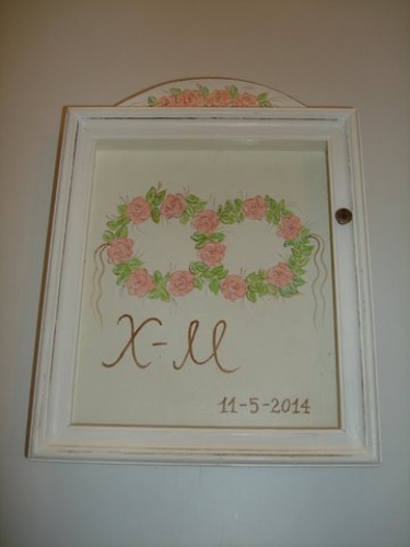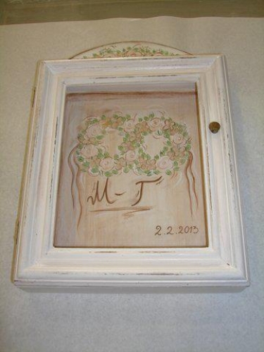 Ξύλινη στεφανοθήκη, ζωγραφισμένη στο χέρι, άσπρη παλαιωμένη, με θέμα“Στεφάνια”