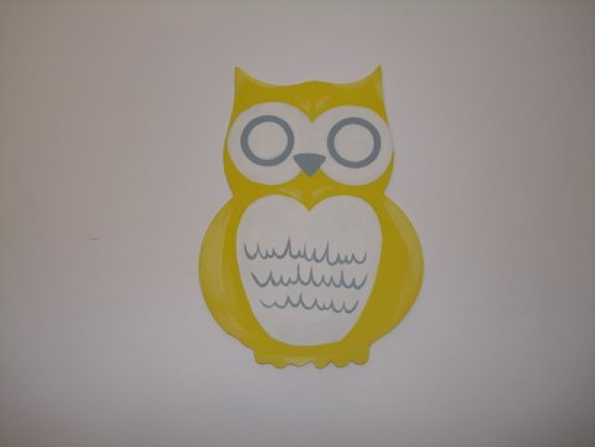 Χειροποίητο ζωγραφισμένο στο χέρι ξύλινο αντικείμενο κουκουβάγια για λαμπάδα βάφτισης.