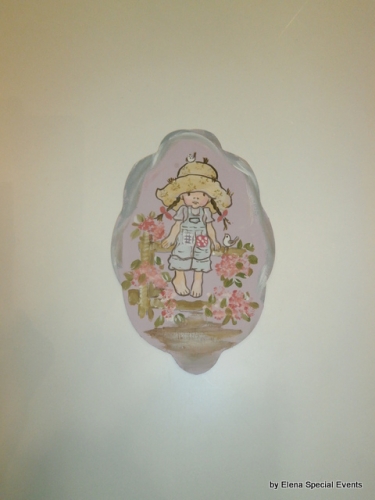 Περιγραφή προϊόντος:Χειροποίητο ζωγραφισμένο στο χέρι ξύλινο αντικείμενο Sarah Kay για λαμπάδα βάφτισης.
