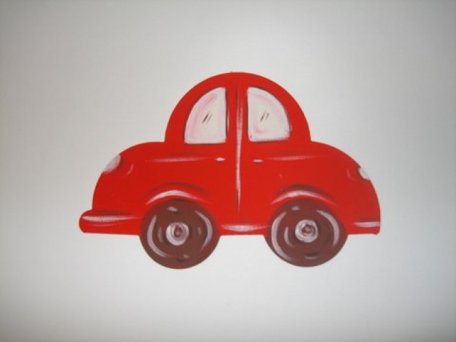 Χειροποίητο ζωγραφισμένο στο χέρι ξύλινο αντικείμενο αυτοκινητάκι για λαμπάδα βάφτισης.