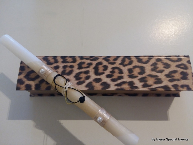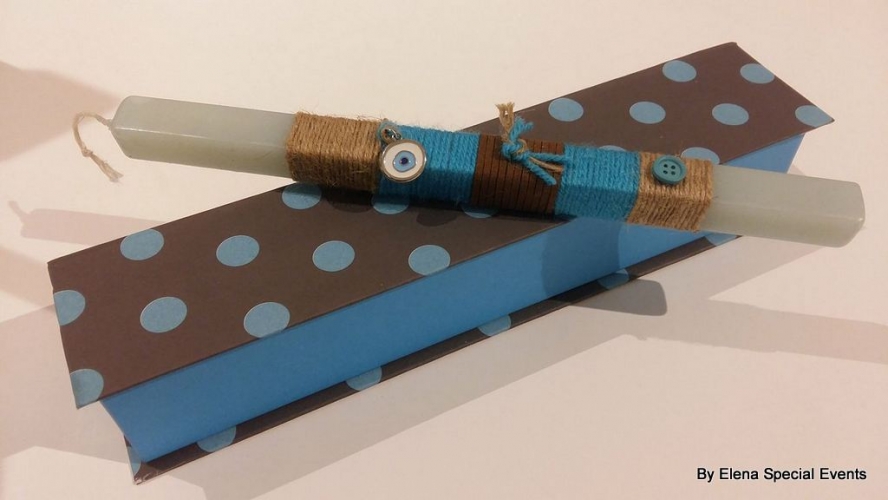 Χειροποίητη Πασχαλινή Λαμπάδα σε διακοσμημένο με δαντέλα χάρτινο κουτί σε διάφορα χρώματα.