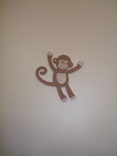 Ξύλινο αντικείμενο (κόντρα πλακέ θαλάσσης, 6mm) ζωγραφισμένο στο χέρι, με θέμα «Μαϊμού» για μπομπονιέρα βάπτισης.