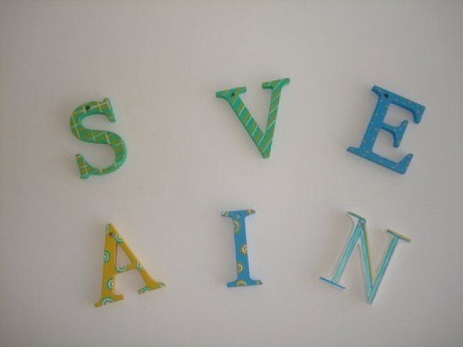 Ξύλινο αντικείμενο ζωγραφισμένο στο χέρι με θέμα «ΜΟΝΟΓΡΑΜΜΑ» για μπομπονιέρα γάμου ή βάπτισης.