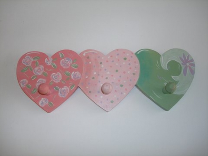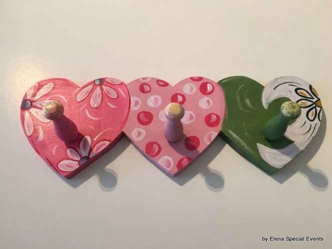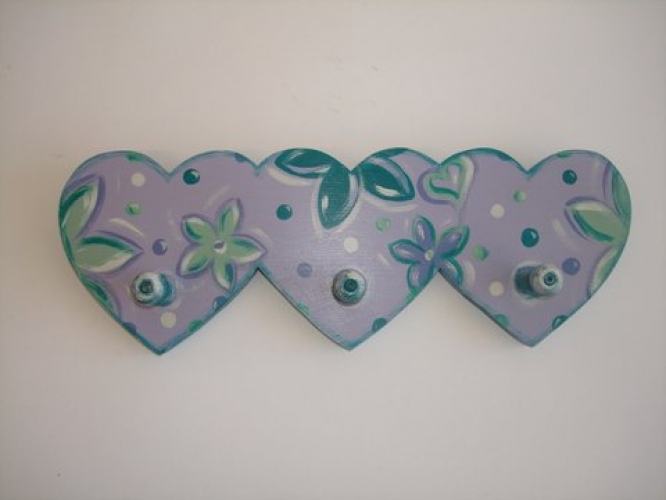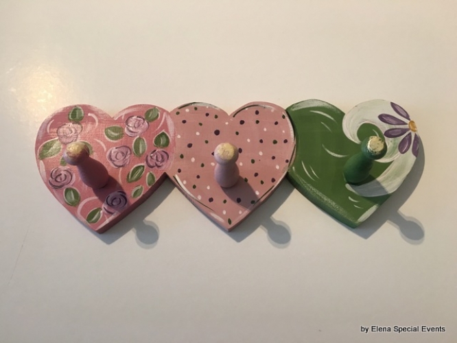Περιγραφή προϊόντος:Χειροποίητη ξύλινη κρεμάστρα “3 καρδιές”, ζωγραφισμένη στο χέρι.