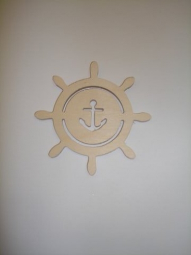 Hand-painted, wooden (marine plywood, 6mm) item “Navy wheel” theme for christening favor.