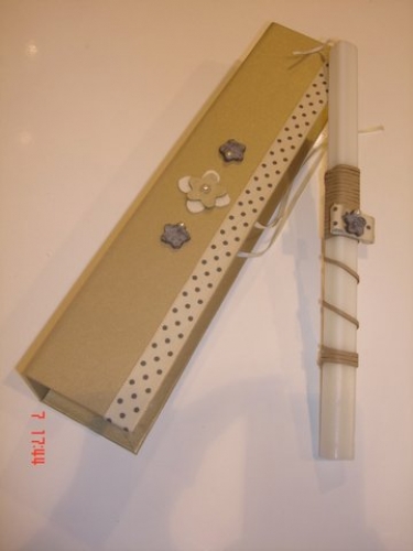 Product description:Handmade Easter Candle in decorated paper box. Available in various colors.