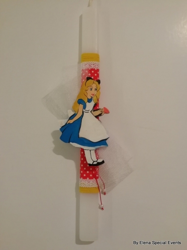 Handmade Easter Candle, with hand-painted wooden item "Alice in Wonderland" theme.