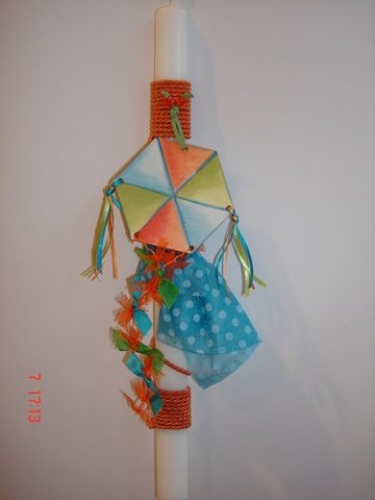 Handmade Easter Candle, with hand-painted wooden item "Kite" theme.
