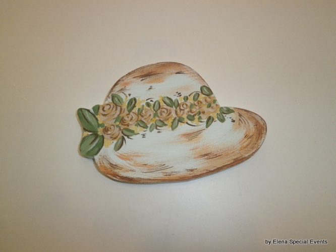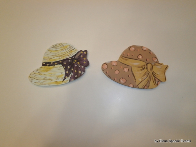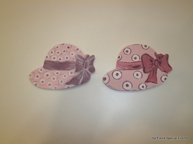Ξύλινο αντικείμενο (8mm) ζωγραφισμένο στο χέρι, με θέμα «Καπέλο Sarah Kay» για μπομπονιέρα βάπτισης.